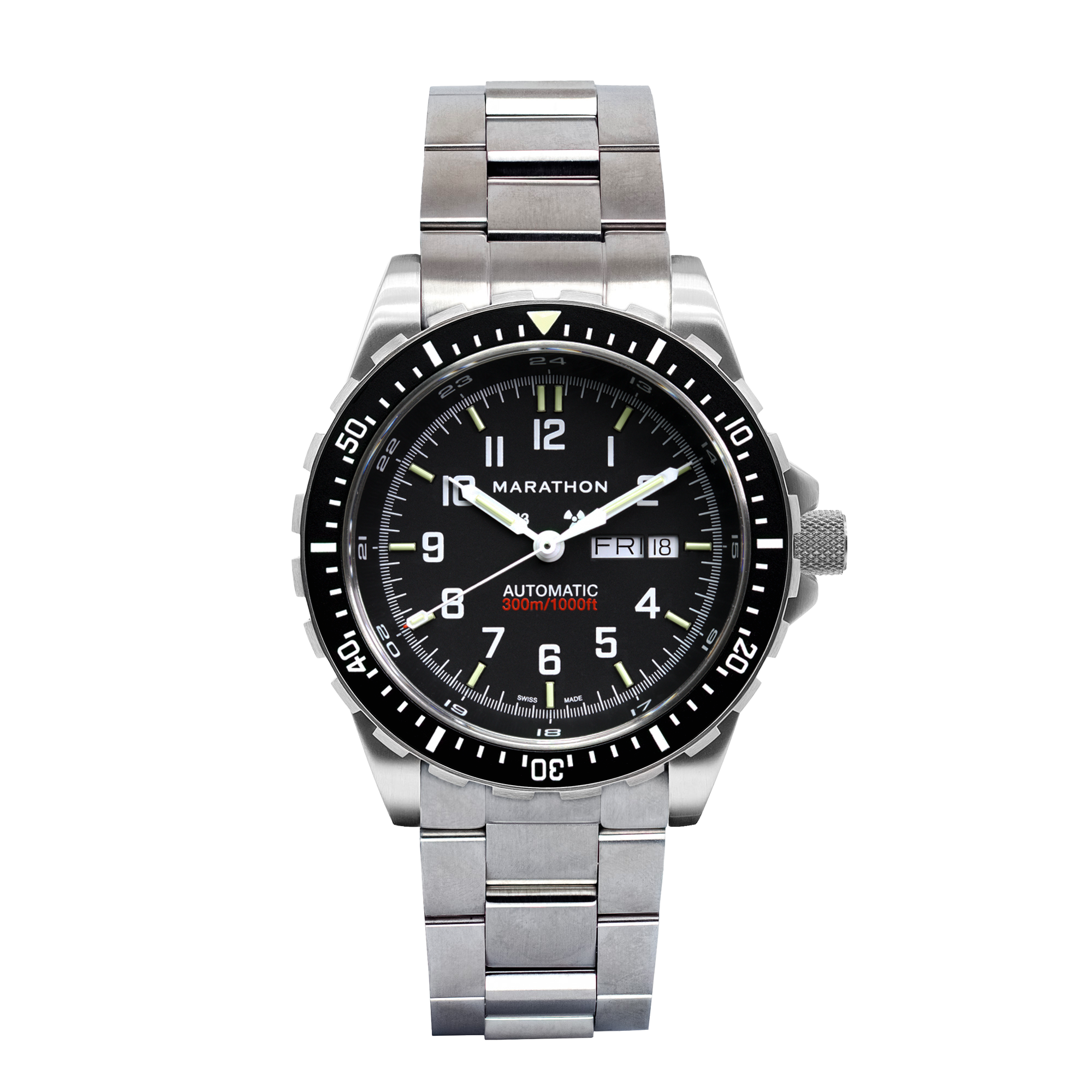 Purpose-built for pilots and parachutists, the Steel Navigator with Date offers pinpoint accuracy featuring our most advanced Swiss-quartz movement to date. A fully re-engineered upgrade to Marathon’s original Steel Navigator developed in 1986, the SSNAV-D represents the return of a true classic.