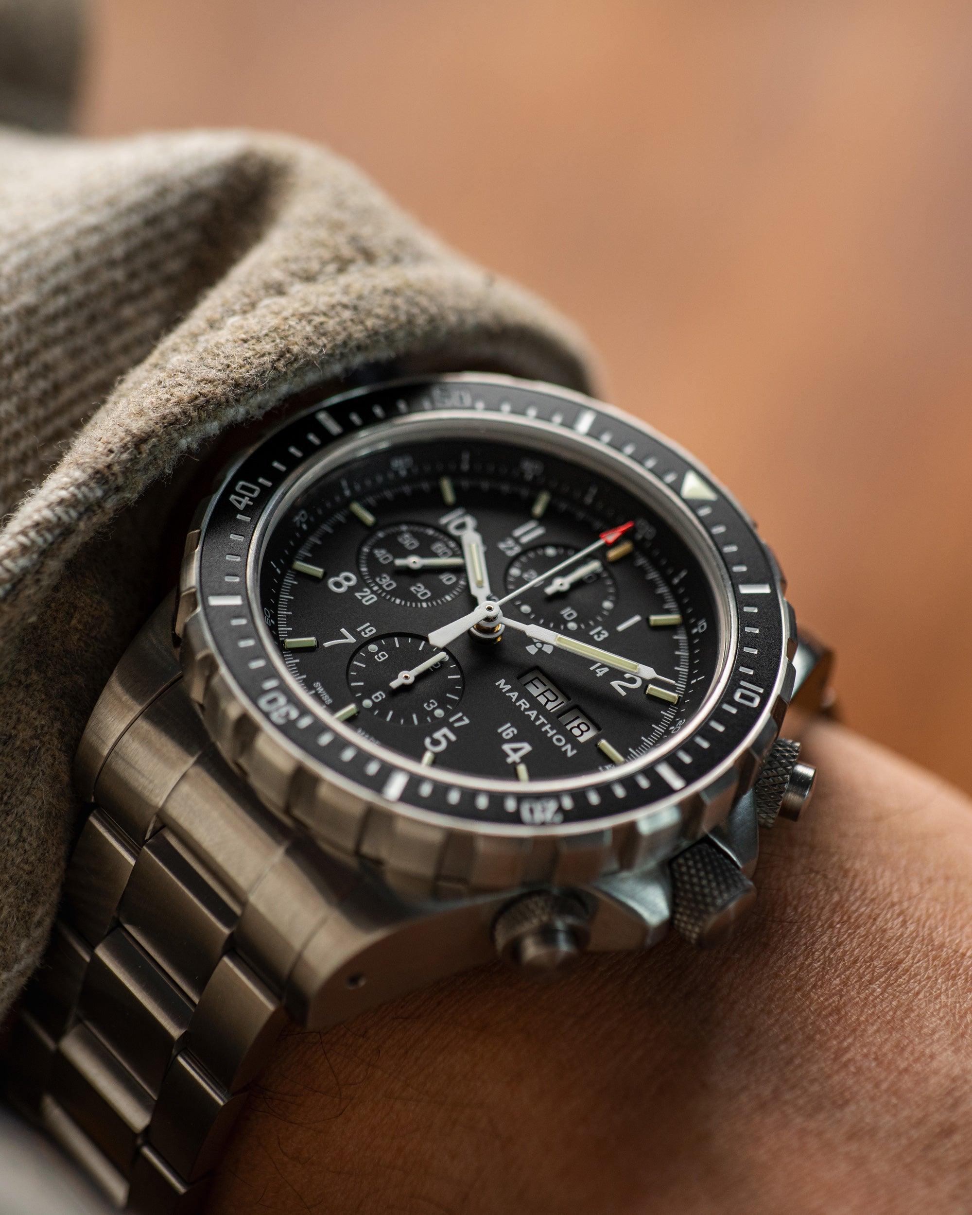 Since 1941, Marathon has been manufacturing timing instruments for the Allied Forces. Today the fourth generation of the family continues the tradition with a wide range of instruments measuring time, temperature and distance, combining military durability with Swiss engineering and craftsmanship to ensure the highest level of quality and precision.