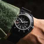 The Marathon Pilot’s Navigator was developed in partnership with Kelly Air Force Base in 1986. The objective then remains today: a pilot’s watch with uncompromising quartz accuracy—capable of withstanding extreme altitude changes.