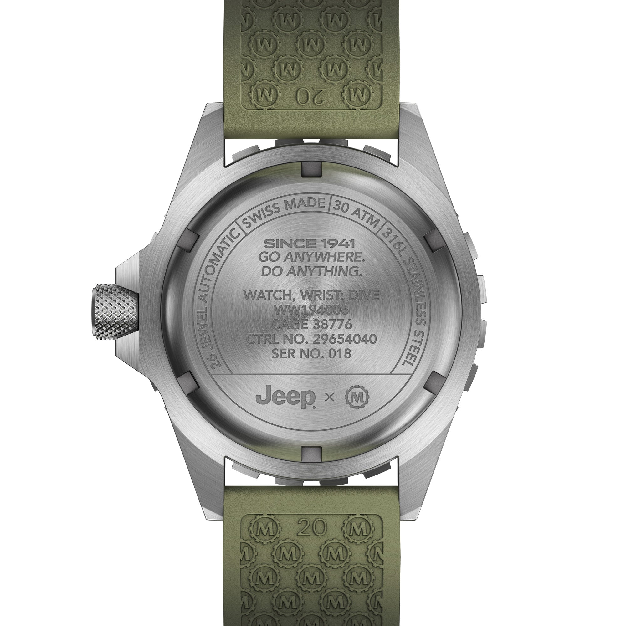 Jeep, the Jeep grille and related logos, vehicle model names and trade dress are trademarks of FCA US LLC and used under license by Marathon Watch Company. ©2024 FCA US LLC.