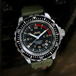 The 41mm Jeep® Rubicon GSAR® is built to withstand extreme conditions, using a combination of tritium and MaraGlo illumination, and featuring a SW200-1 movement with Incabloc® shock protection for enduring accuracy.